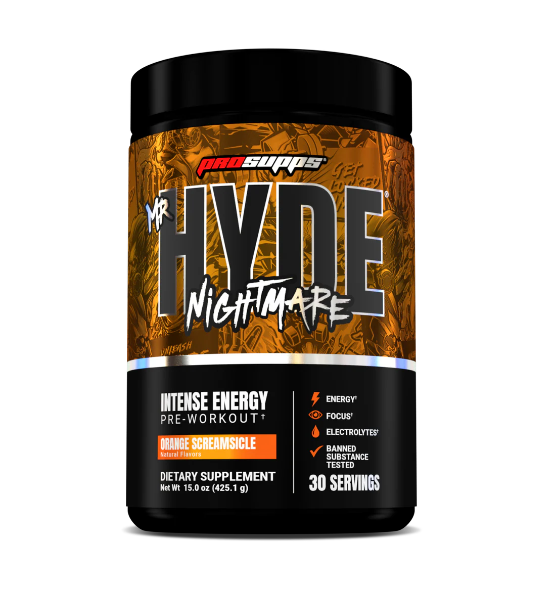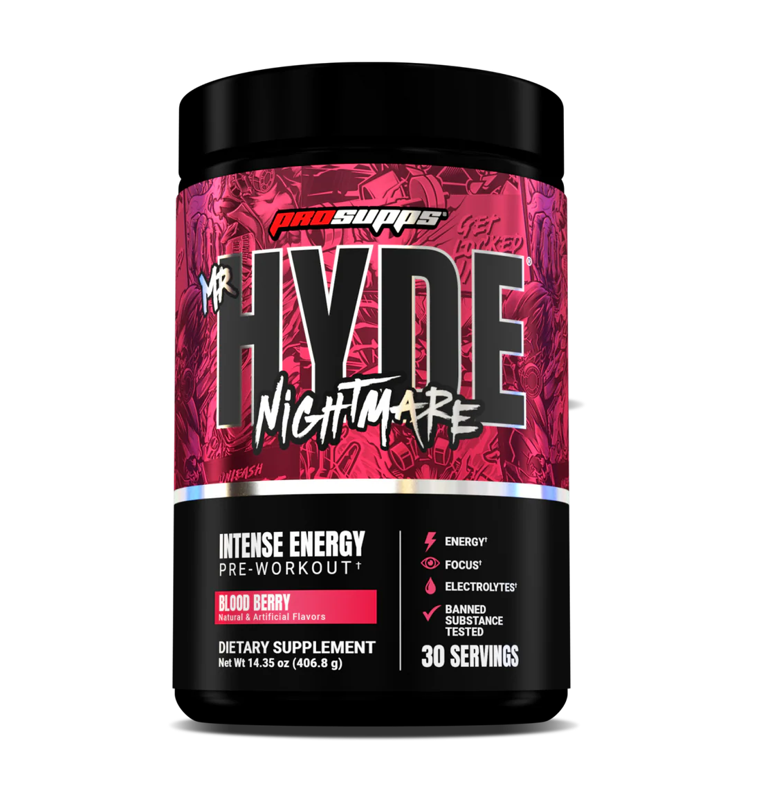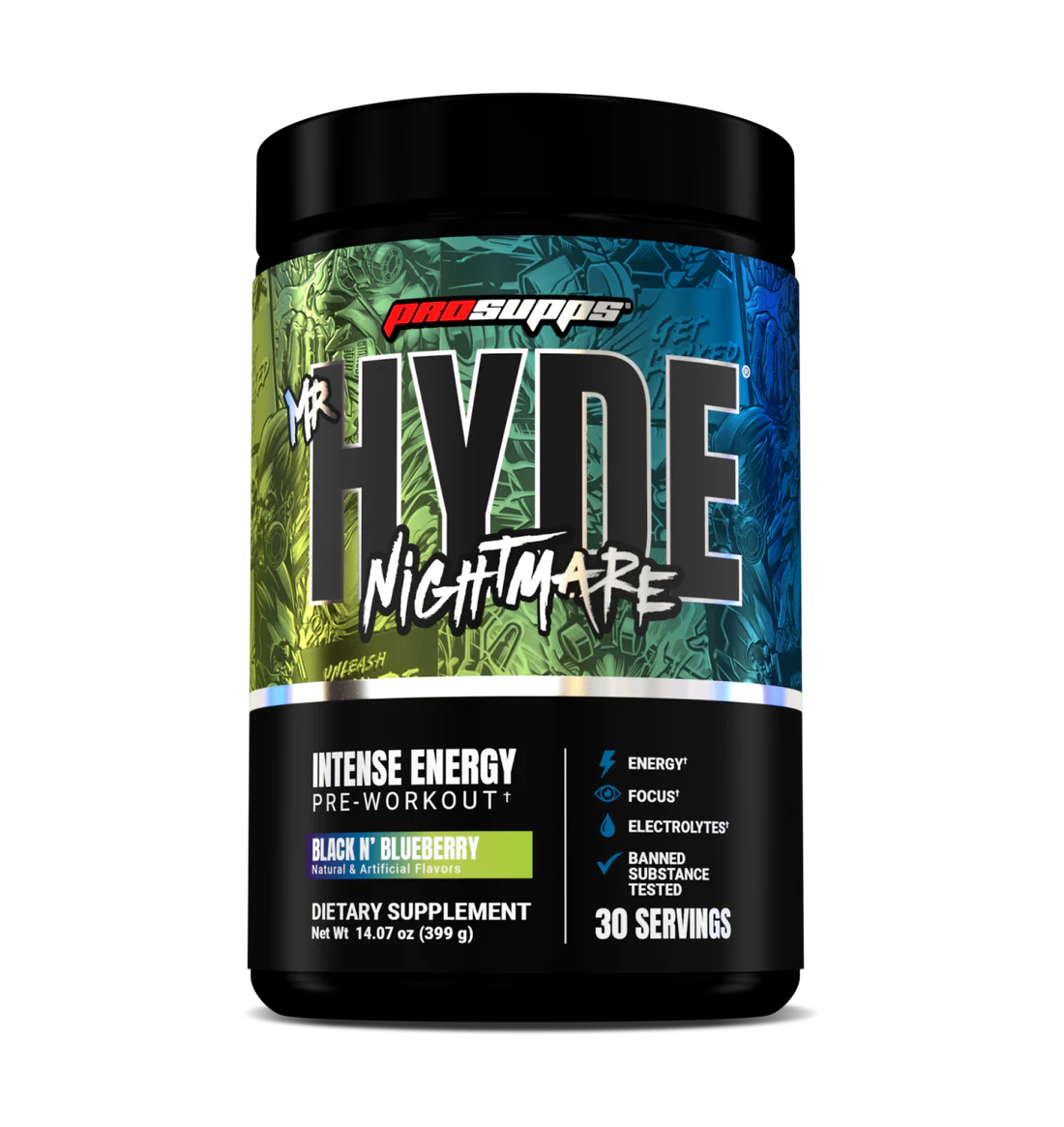 HYDE® Nightmare es un polvo pre-entreno, formulado para atletas de alto rendimiento que soportan una cantidad excesiva de estrés físico y mental. Impulsado por ingredientes investigados clínicamente para mejorar el rendimiento muscular y mental, HYDE® Nightmare también repone los líquidos perdidos durante la actividad intensa.