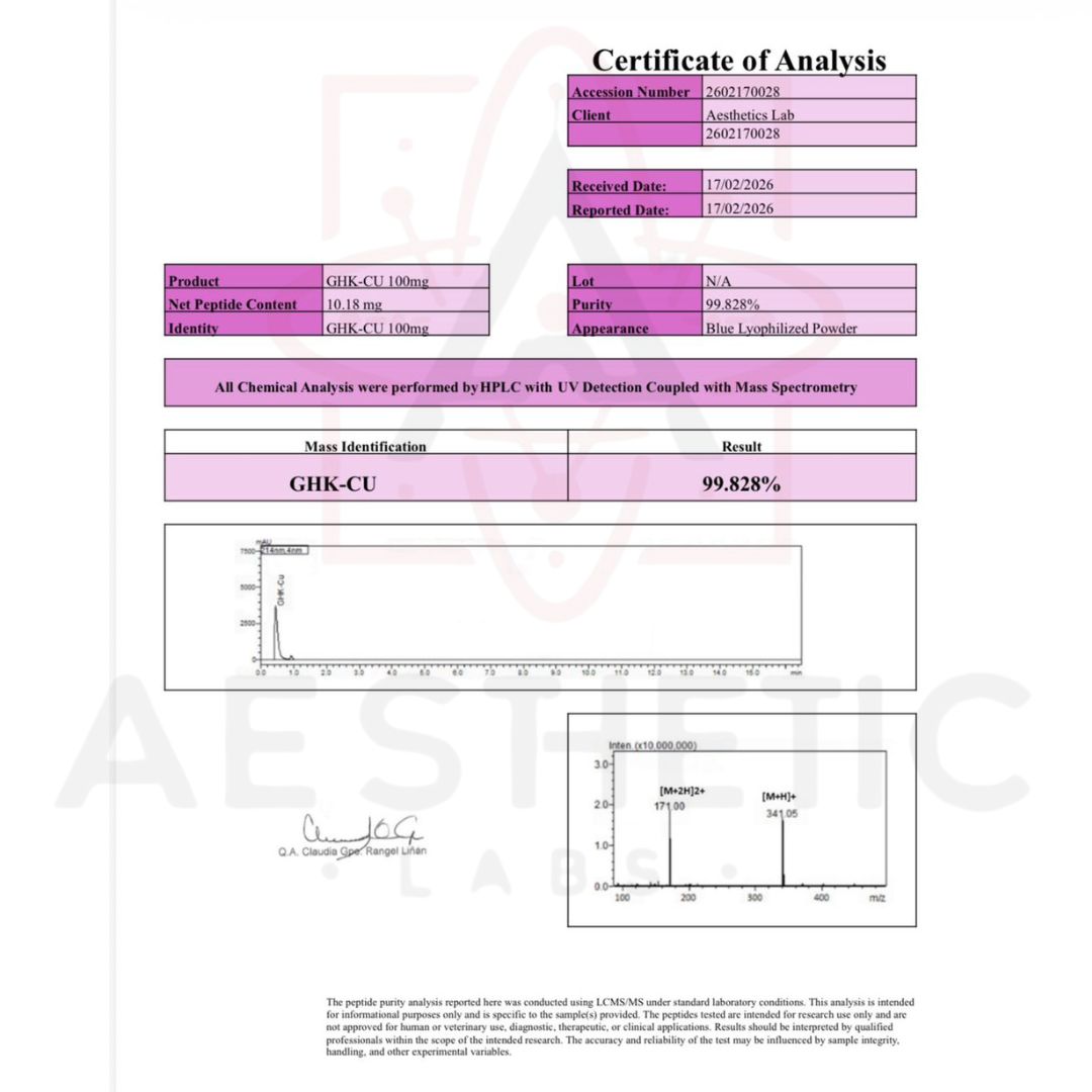Especificaciones: Aesthetic Labs GHK-CU 100mg