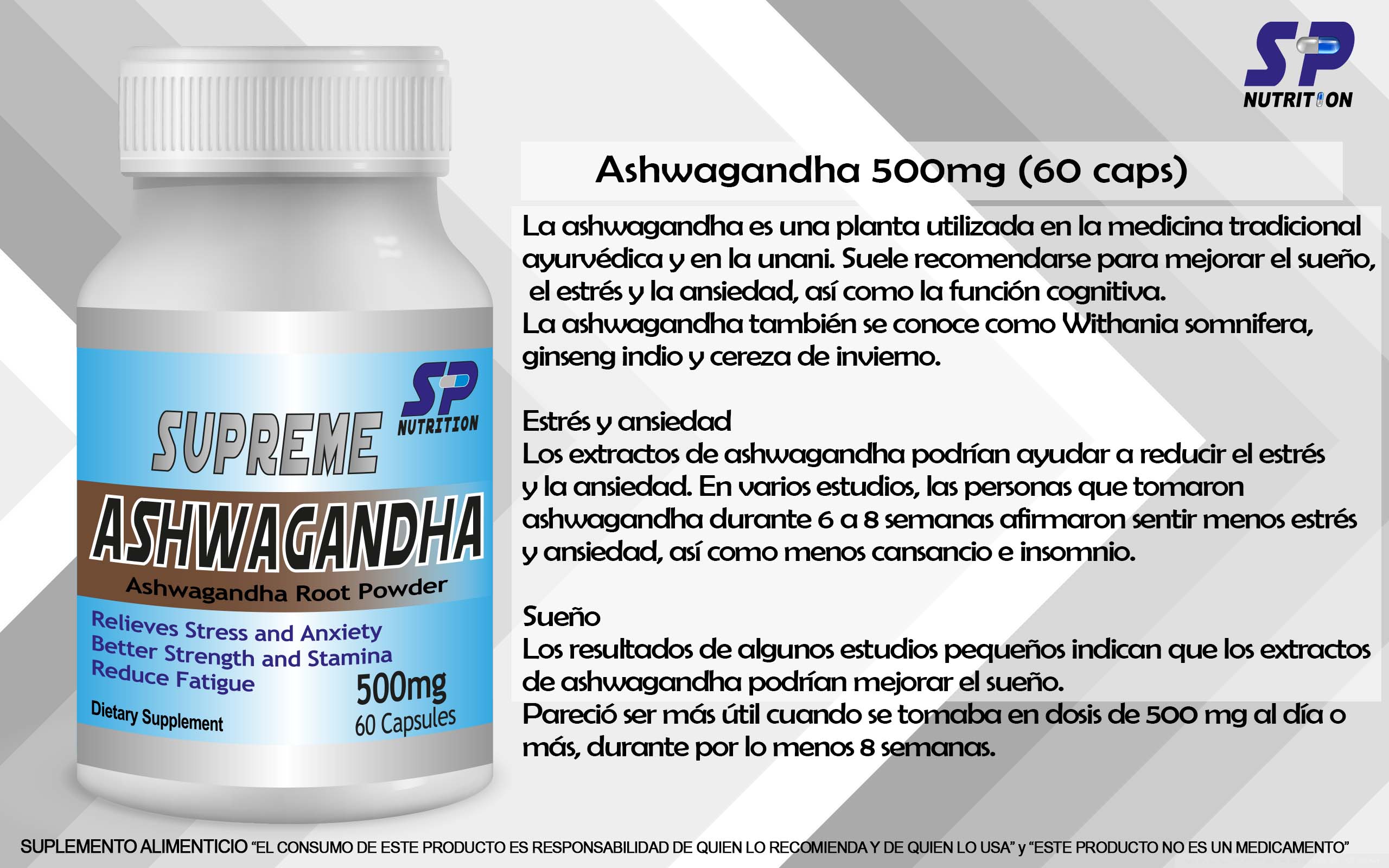 La ashwagandha es una planta utilizada en la medicina tradicional ayurvédica y en la unani. Suele recomendarse para mejorar el sueño, el estrés y la ansiedad, así como la función cognitiva. La ashwagandha también se conoce como Withania somnifera, ginseng indio y cereza de invierno. Estrés y ansiedad Los extractos de ashwagandha podrían ayudar a reducir el estrés y la ansiedad. En varios estudios, las personas que tomaron ashwagandha durante 6 a 8 semanas afirmaron sentir menos estrés y ansiedad, así como menos cansancio e insomnio. Sueño Los resultados de algunos estudios pequeños indican que los extractos de ashwagandha podrían mejorar el sueño. Pareció ser más útil cuando se tomaba en dosis de 500 mg al día o más, durante por lo menos 8 semanas.