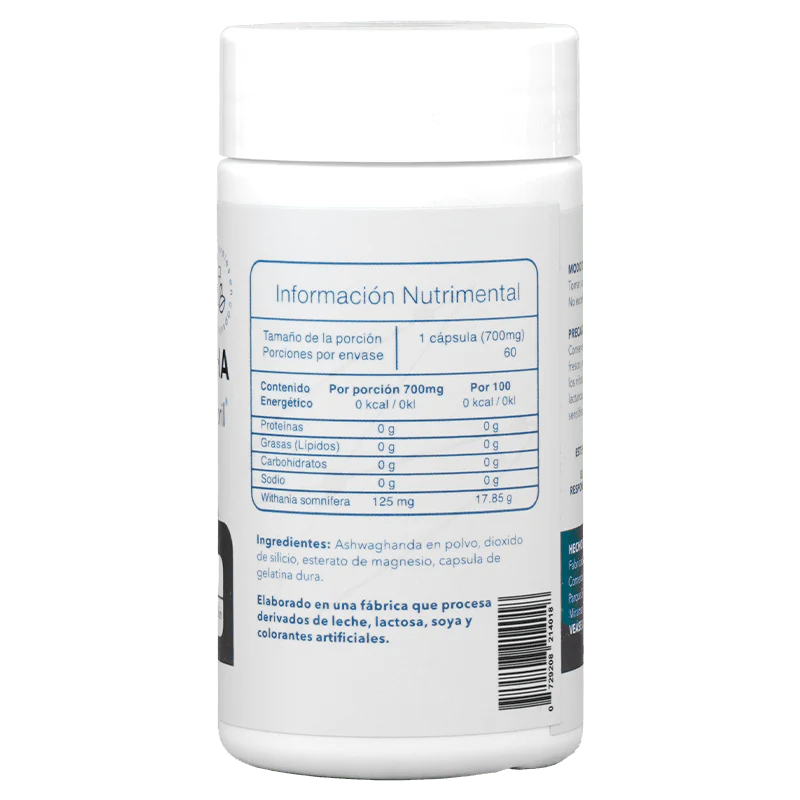 Suplemento de Ashwagandha Sensoril®, extracto estandarizado con alta concentración de compuestos activos (withanólidos), presentado en 60 cápsulas. Sensoril® es un formato clínicamente estudiado de ashwagandha que favorece una respuesta adaptogénica más eficiente.