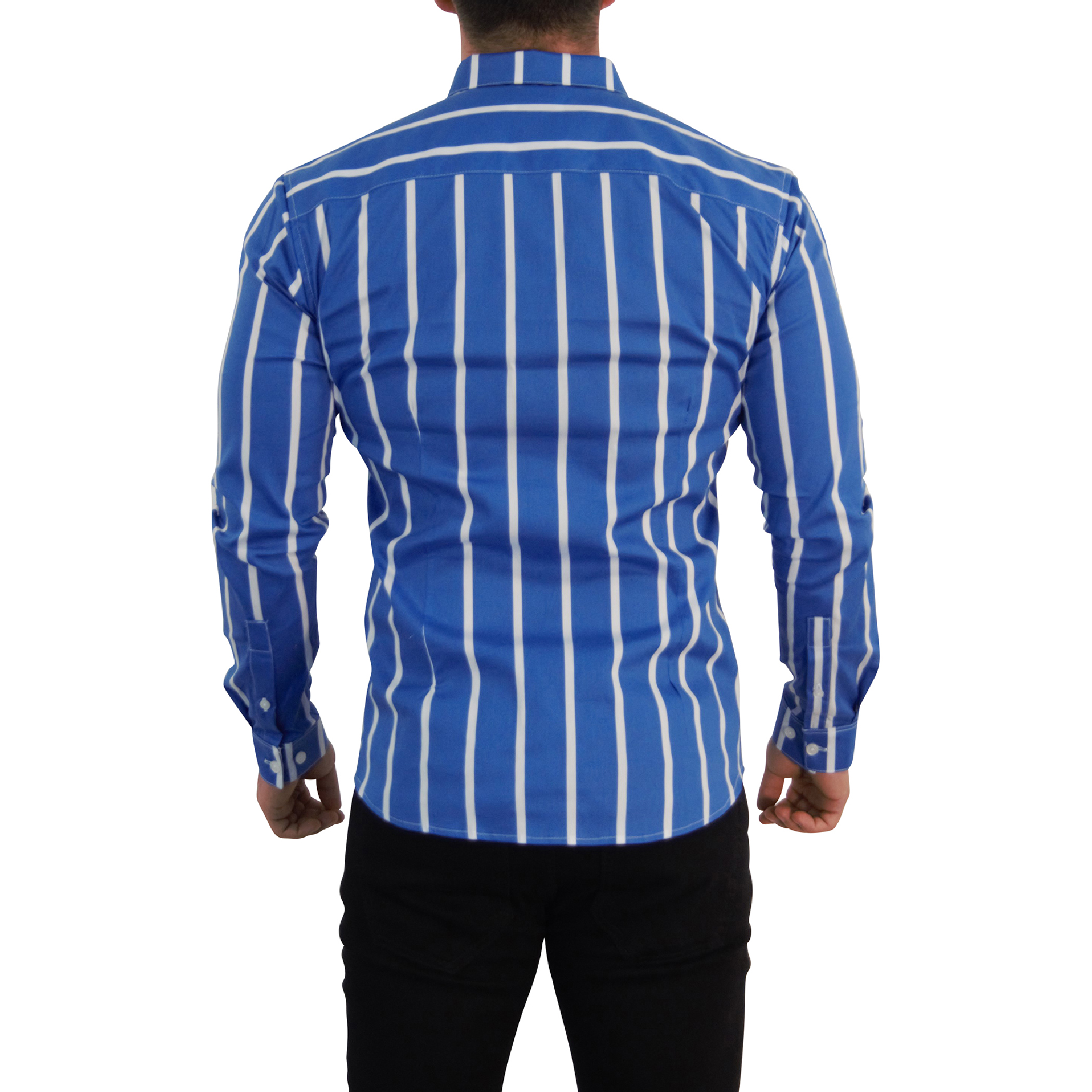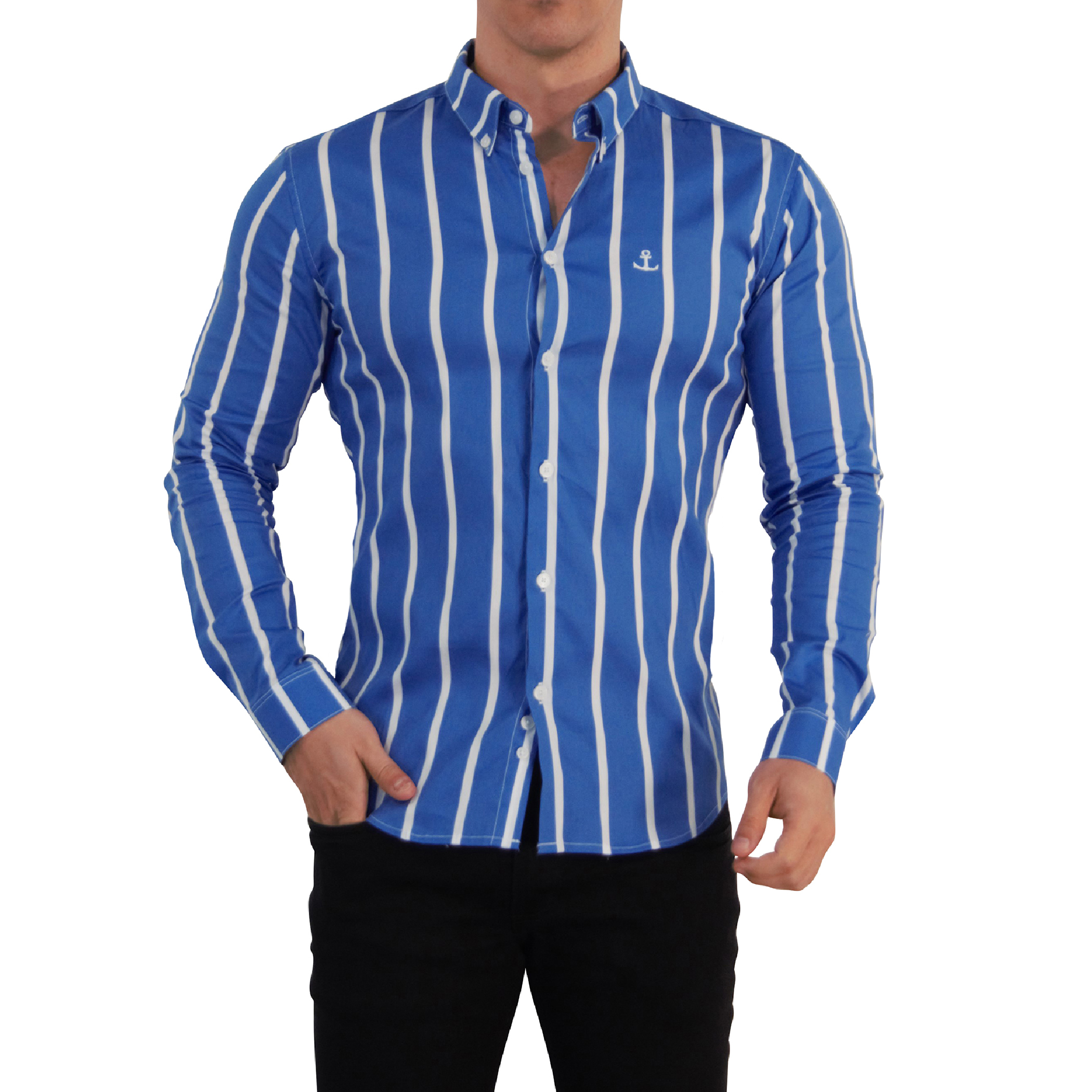 John Leopard Camisa Slim Fit Light Stripe Clear Blue