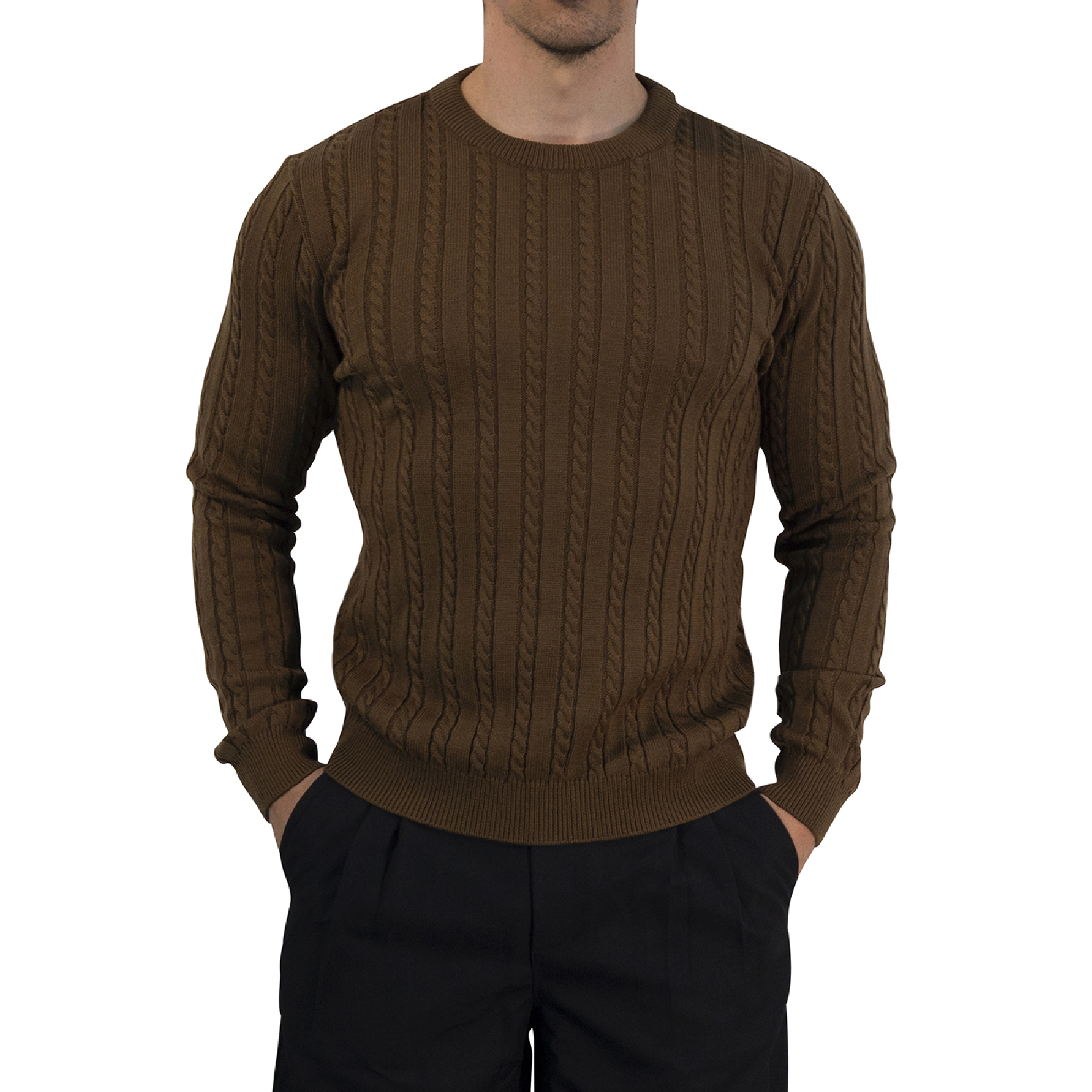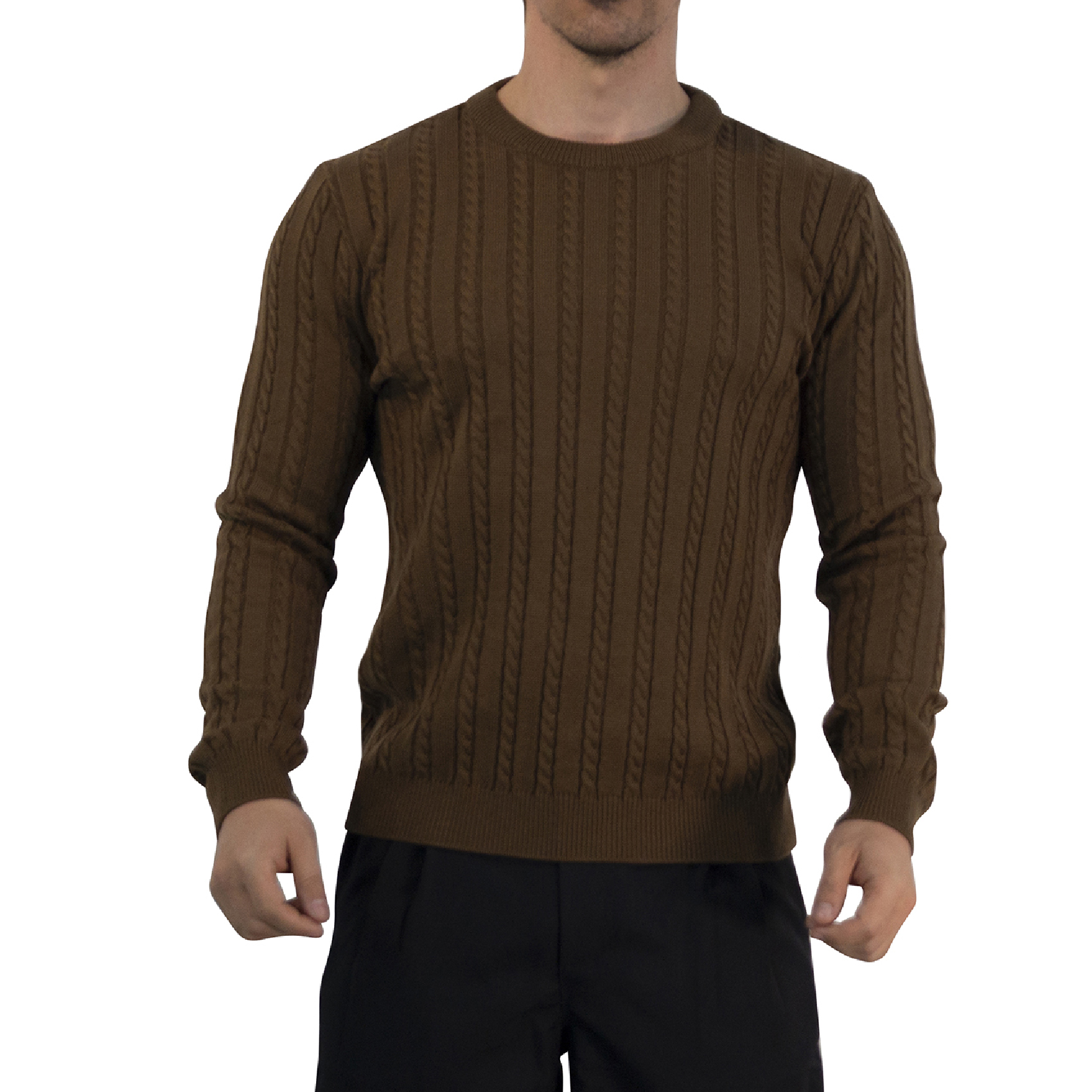 Especificaciones: John Leopard Crewneck Cable Knit Sweater Dark Brown