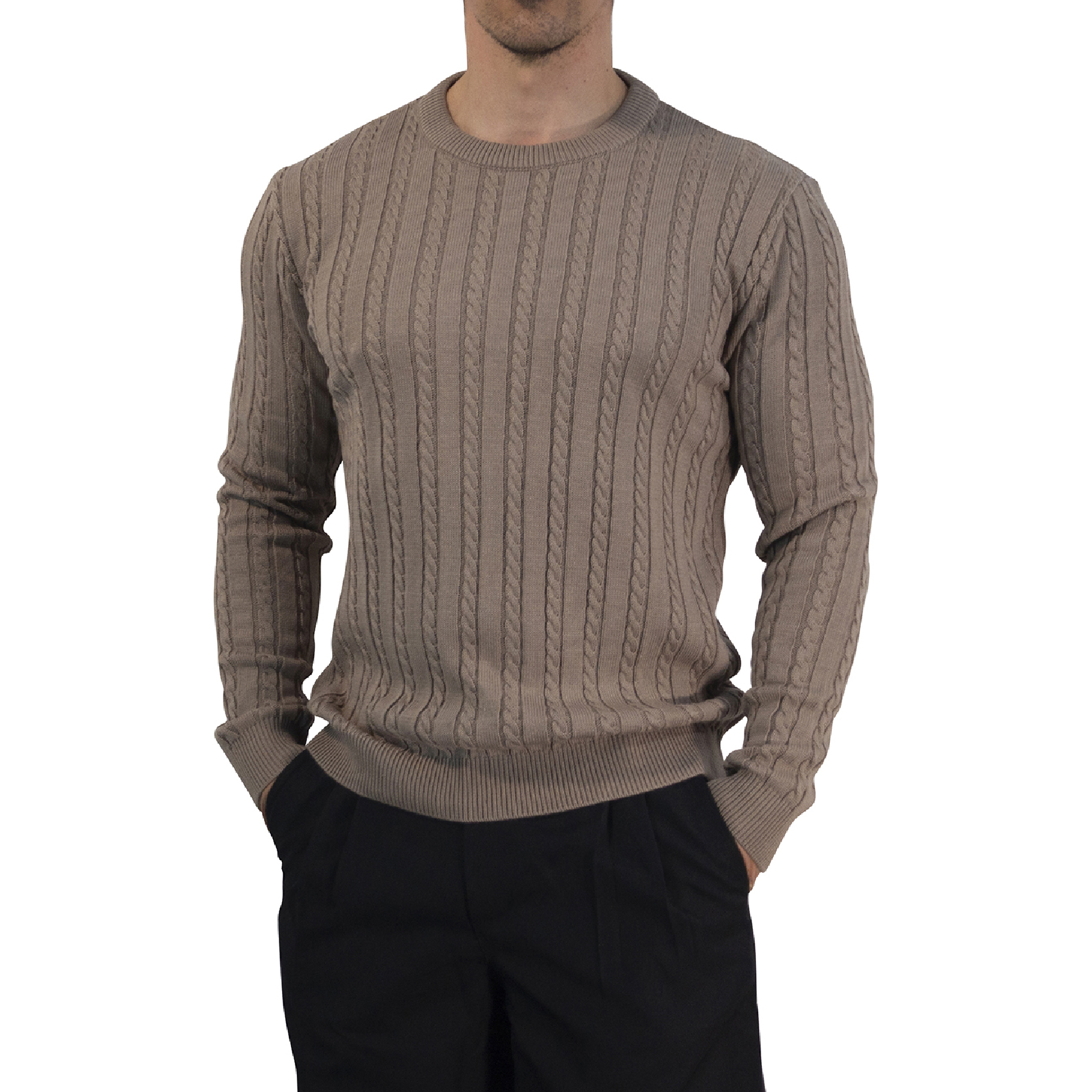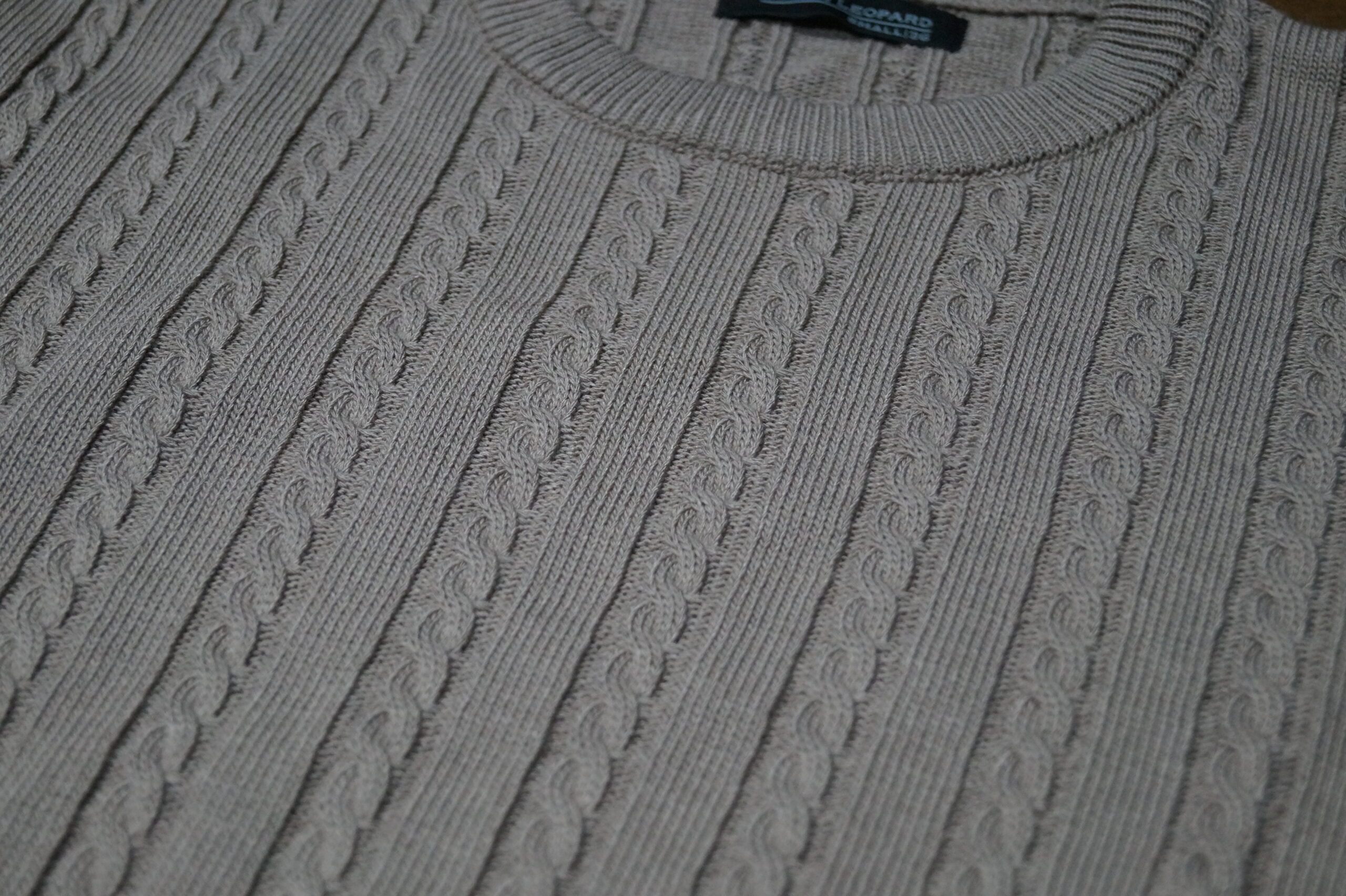 Especificaciones: John Leopard Crewneck Cable Knit Sweater Light Bown